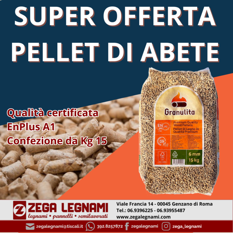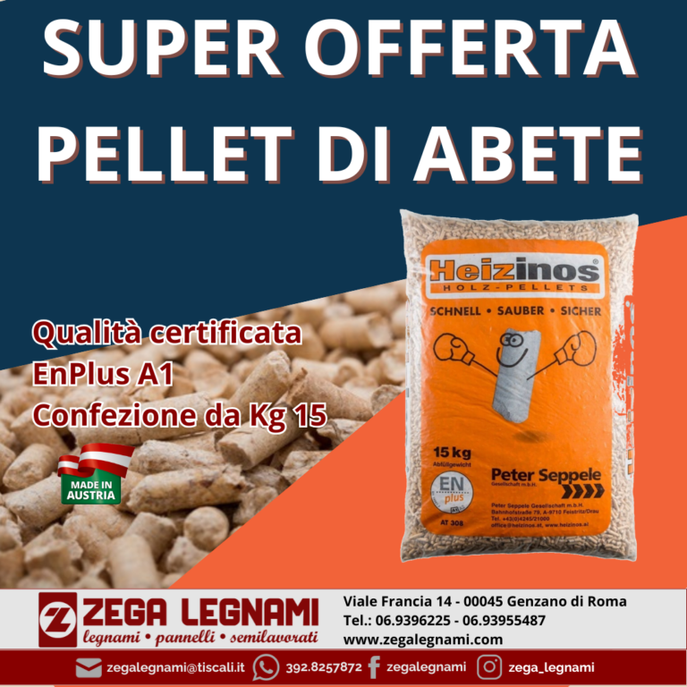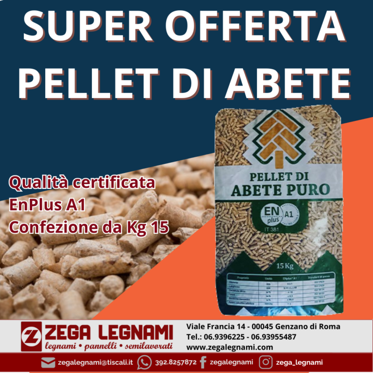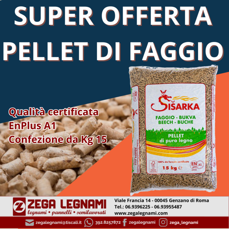 Pellets per stufe in abete e in faggio certificato, confezionato in sacchi da kg 15.